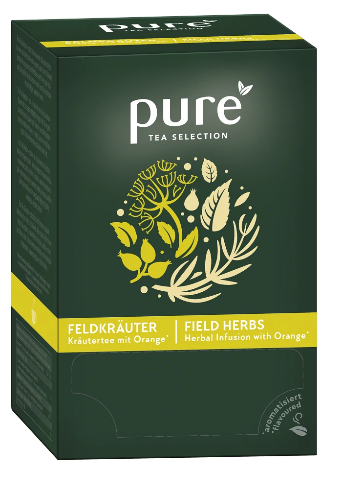 Pure Tea Selection – odpočiňte si od všednosti a objevte skutečnou krásu malých věcí v životě. Náš čaj z polních bylin je harmonická směs divokých bylin a kousků zralého ovoce. Vychutnejte si naši směs volných lístků intenzivního bylinného čaje v ekologické síťovém sáčku.